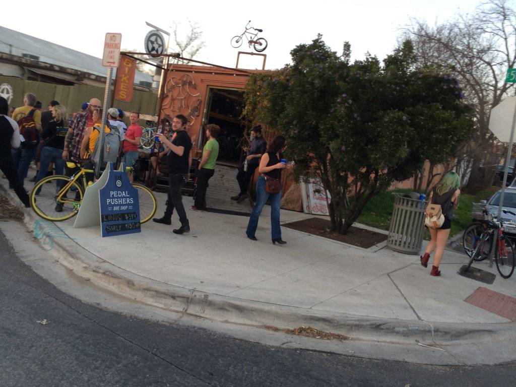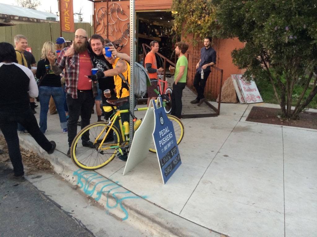 Any Austin Bicycle Shop, 04 Lounge, Aaron’s Rock & Roll, Apparition Skateboards, Austin’s Pizza, Baby Blues, Banger’s Sausage House & Beer Garden, Banger’s Sausage House and Beer Garden, Benji’s Cantina, Birds Barbershop, Black Sheep Lodge, Blake’s on Sixth Street, Brew Exchange, Buddy’s Place, Bullritos, Butterfly Bar @ The Vortex, Cheer Up Charlies, Cherrywood Coffeehouse, Chi’Lantro, Counter Culture, Crown & Anchor Pub, Dane’s Body Shop, Doc’s Motorworks, Dog & Duck Pub, Draught House Pub & Brewery, Fish Gallery, Frock On Vintage, G’Raj Mahal Indian Cafe and Lounge, Game Republik, Gibson Street Bar, Hopfields, Hyde Park Yoga Company, in.gredients, Independence Brewing Company, Junior’s Beer & Wine, Kung Fu Saloon, Lamar Senior Activity Center, Lavaca Street Bar Star Bar, Live Love Paddle, Live Oak Barbecue, Midway Field House, Mug Shots, Neighborhood Acupuncture Project, Nomad Bar, Posse East, Quickie Pickie, R and D Motors, Rattle Inn, Razor Hoof Screen Printing, Rio Rita, Room Service Vintage, Ruby’s BBQ, Sao Paulo’s Restaurante, Shift Gear Exchange, Smoking Caterpillar, South Congress Café, Spider House Cafe and Ball Room, Sputnik, Star Bar, Taco Joint, Tamale House East, Texas Coffee Traders, The Austin Beer Garden Brewing Company, The Blackheart, The Jackalope Night Club, Tom’s Tabooley, Treasure City Thrift, Trudy’s, Trudy’s North Star, Trudy’s South Star, Wahoo’s Fish Taco’s, West End Grooming, Winflo Osteria, Wok ‘N Express, Yellow Bike Project, Yellow Jacket Social Club.