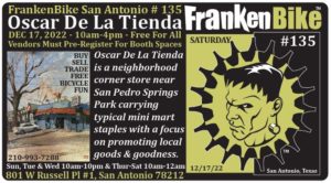 FrankenBike San Antonio #135: SATURDAY, December 17, 2022 from 10am-4pm at Oscar De La Tienda ALL VENDORS MUST REGISTER
