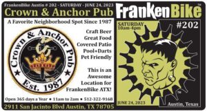 FrankenBike Austin # 202: SATURDAY: June 24, 2023 from 10am-4pm at Crown and Anchor Pub ALL VENDORS MUST REGISTER