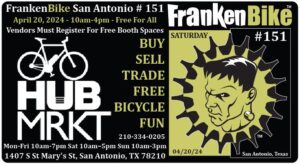 FrankenBike San Antonio # 151: Saturday, April 20, 2024 from 10am4pm at HUB MRKT ALL VENDORS MUST REGISTER